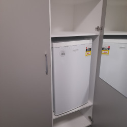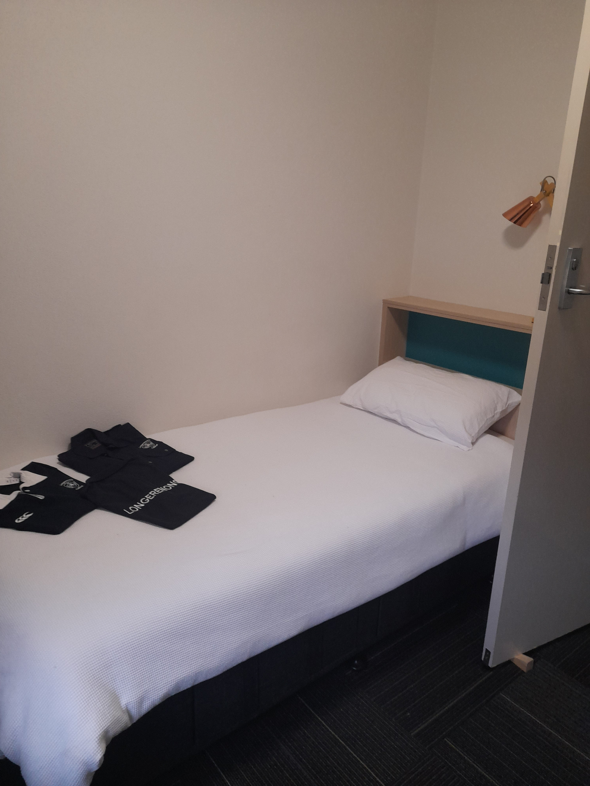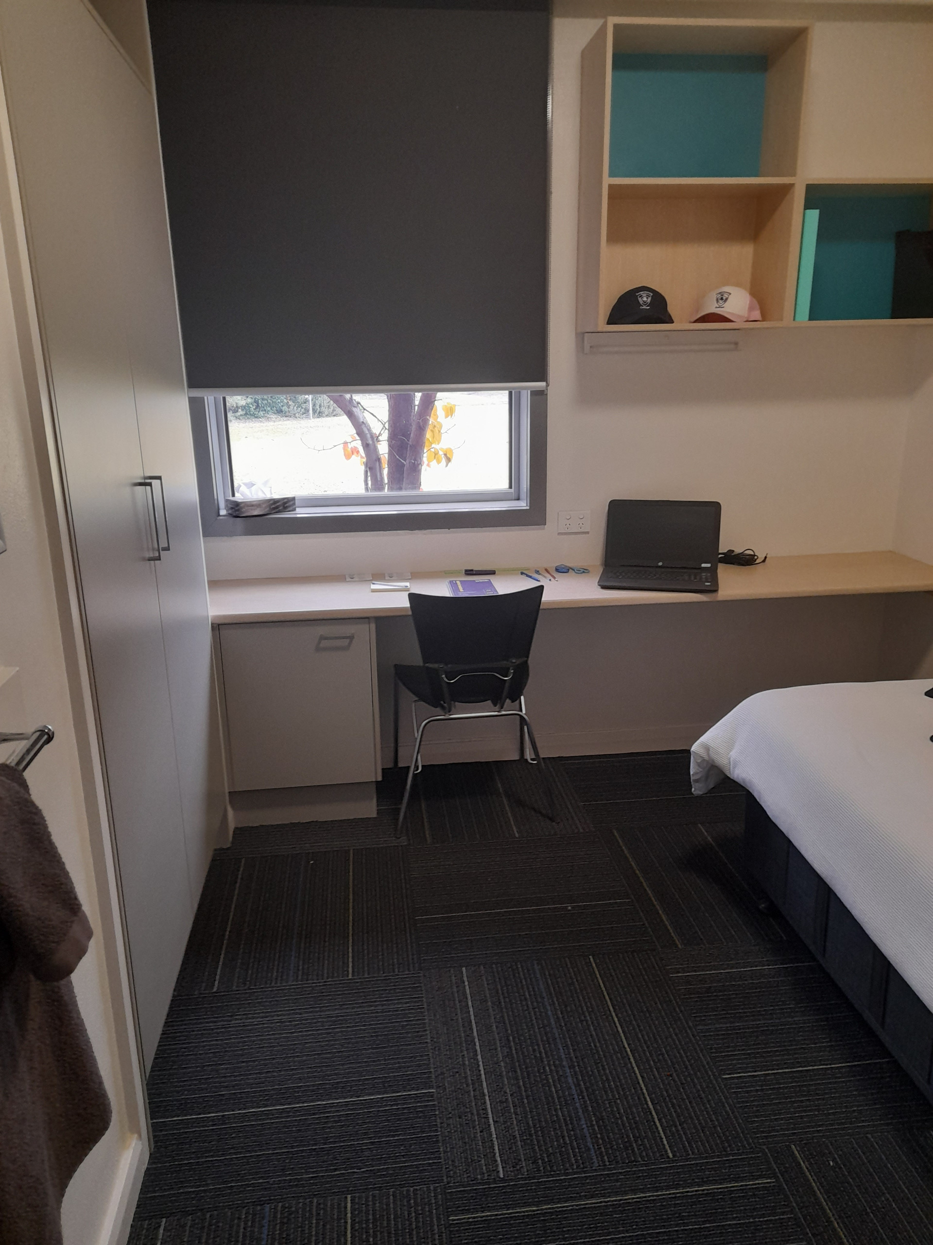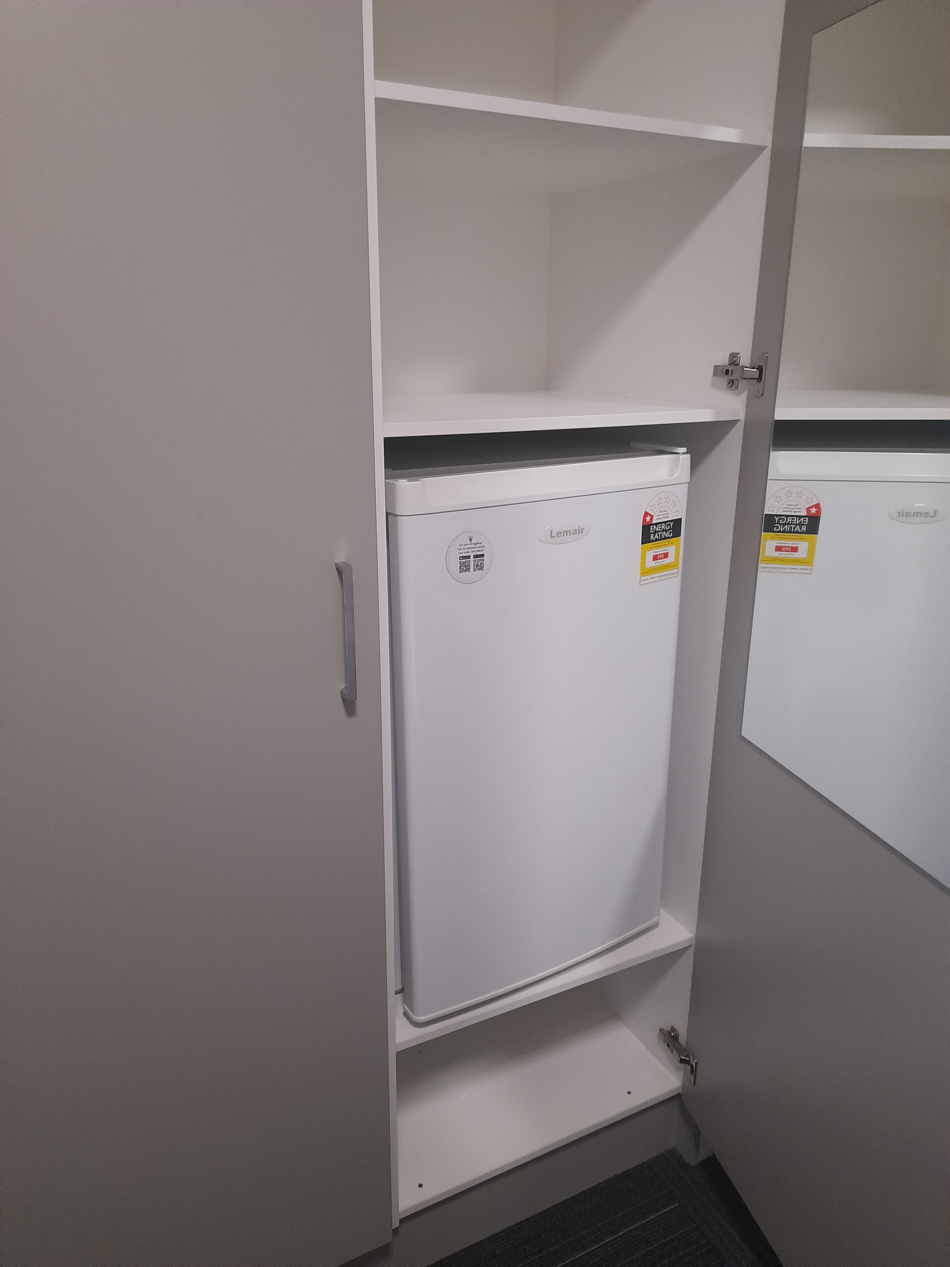 Our Dorm Style accomodation is a budget-friendly option ideal for short-term stays, groups, or study programs. Each single room is equipped with a bed, wardrobe, fridge, desk, lamp, chair, shelving, and air conditioning. Guests enjoy access to a communal kitchen fitted with modern appliances and a shared lounge and study area designed for relaxation and productivity. A disability-accessible room is available upon request. The dorm building is lift-accessible and includes free on-site parking & Free WiFi.