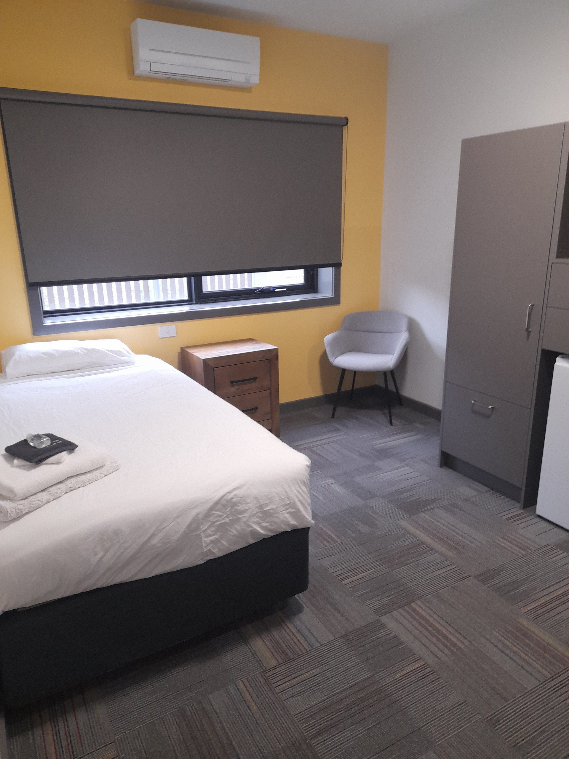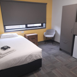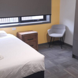 Our Unit Rooms offer private, fully furnished spaces ideal for students, interns, and solo travellers. Each unit features seven king single bedrooms with study desks and personal fridges. Guests share four well-maintained bathrooms and a fully equipped communal kitchen that includes an air fryer, dishwasher, and coffee station. A spacious shared lounge with a Smart TV adds to the relaxed, social atmosphere. One unit includes a fully accessible disability room. All rooms include air conditioning, heating, free parking, and free WiFi.